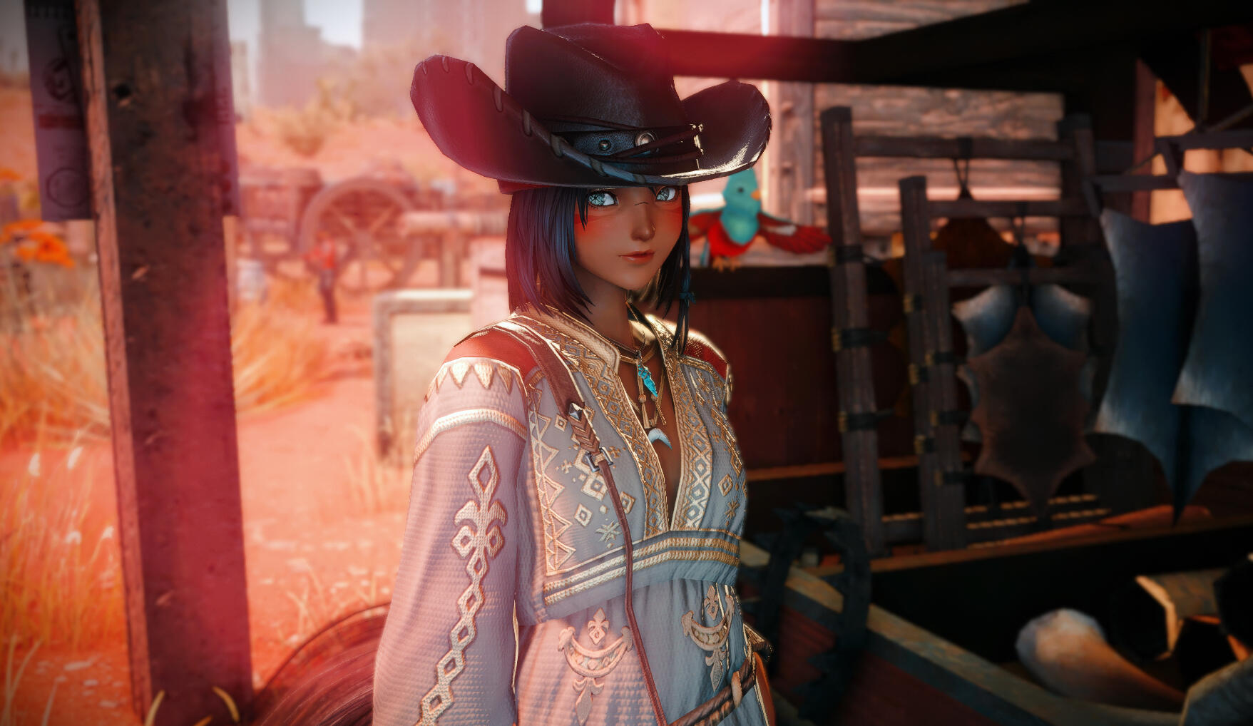 On the dusty streets of Hhusatahwi, a Hhetsarro girl leans against a wooden cart. Displayed behind her is a variety of merchandise produced by her kin; rows of leatherworked items, folk medicine, dried fish and meat, baked goods, and nopalitender tuna wine. A quetzal perches upon a nearby crate, sleepily preening its feathers. Perhaps something catches your eye?